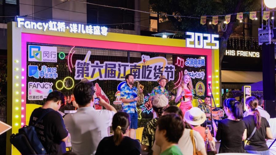 原来,第六届江南吃货节老外街分会场“Fancy 虹桥・洋儿味盛宴”正在这里举办。这场集全球美食、精品红酒、live音乐于一体的美食盛宴,自9月24日开幕至今,吸引了大批市民游客慕名而来,让有着“美食联合国”之称的老外街处处洋溢浓郁的烟火气与国际化风情。